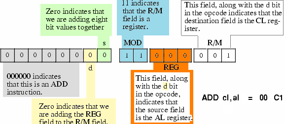 - d=1: REG <- MOD R/M, REG is the destination