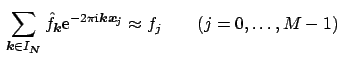 Or the appendix in Potts, D. and Steidl, G. Fast summation at nonequispaced knots by NFFTs. SIAM J. on Sci. Comput. 24, 2013-2037. (full paper ps, pdf), 2003The inverse NFFT is considered in Stability Results for Scattered Data Interpolation by Trigonometric Polynomials ( full paper ps, pdf).