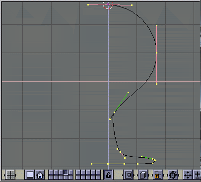 Hierzu erstellen wir uns im FrontView (NUMPAD_1) eine Kurve Toolbox->ADD->Curve->BezierCurve.