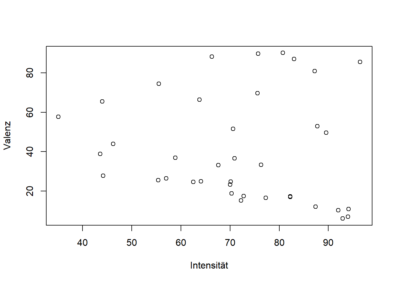 plot(emoji_df$Intense_m, emoji_df$Valence_m, xlab = "Intensität", ylab = "Valenz")