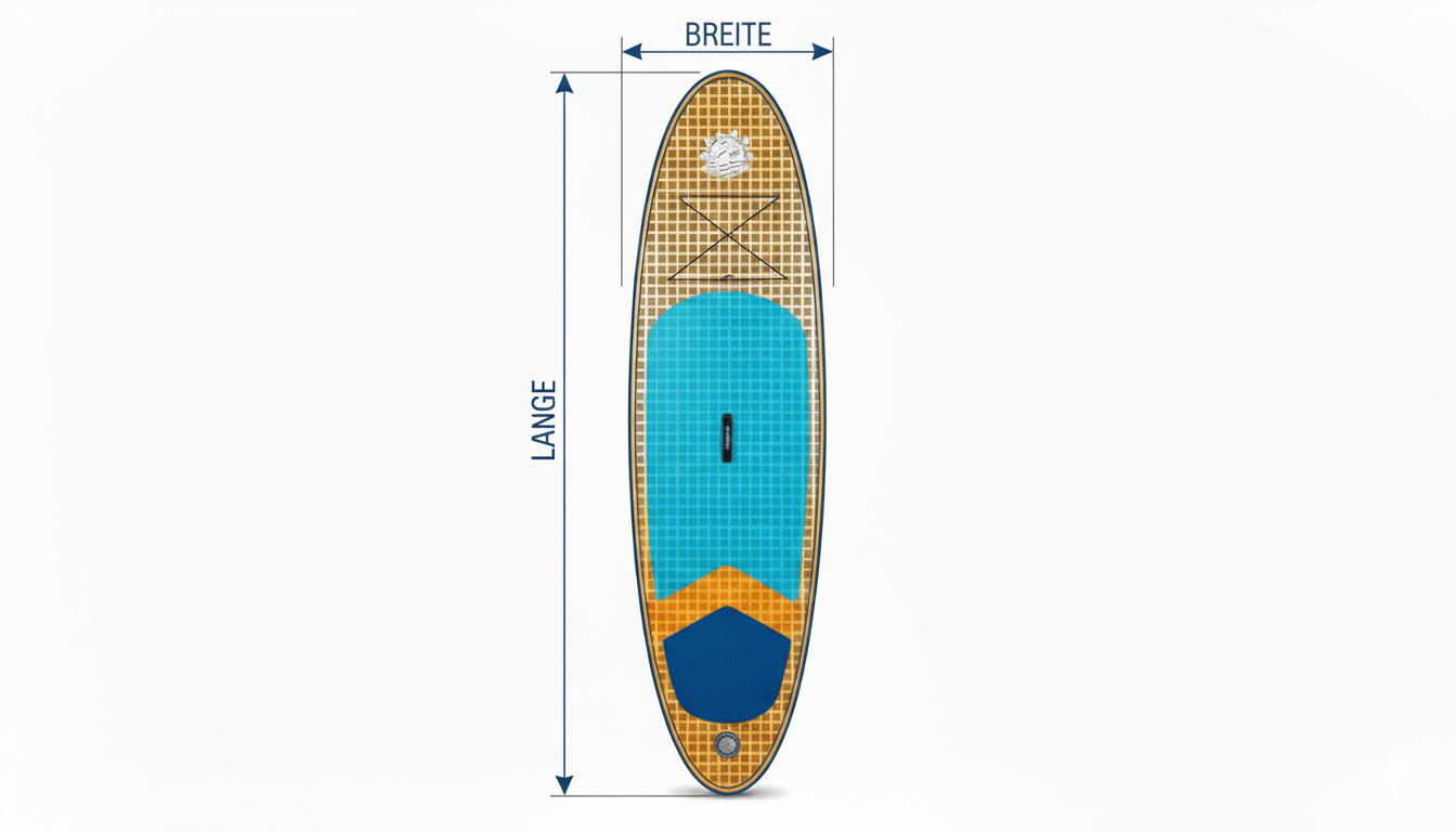 Für Allround-SUPs würde ich einen Formfaktor von 0,75 bis 0,85 vorschlagen um realistischer zu sein. Übersetzt heißt das: Die Boards sind in der Praxis weniger „klotzig“, als es manche Standardannahmen vermuten lassen.