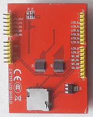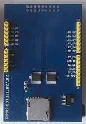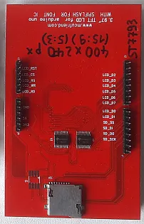 Immerhin ist da noch ein Touchscreen und ein SD-Kartenleseschacht dran. Der arme kleine Mikrocontroller! (Verwalte mal 32 Gigabyte mit 1 Kilobyte RAM!) Dafür gibt es jedoch vom Hersteller keinen Verweis auf Demo-Programme. Es gibt auch keine. Bananen-Hardware? (Soll beim Anwender reifen.) Das Display ist leider write-only angeschlossen, damit ist Alpha-Transparenz und (einfachere) binäre Rasteroperationen nicht realisierbar. Zudem lässt sich so kein echtes Scrolling realisieren. Scrollen muss durch kompletten Bildneuaufbau realisiert werden.