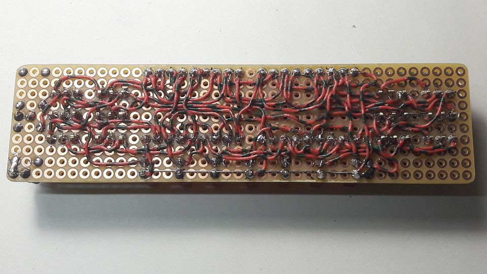 Durch das Vertauschen von a↔d, b↔e und c↔f für die jeweils gestürzten Anzeigen ergibt sich eine kreuzungsarme Verdrahtung. Es ist jedoch elend wirr und ohne diese Dokumentation nicht aus dem Stegreif lötbar.