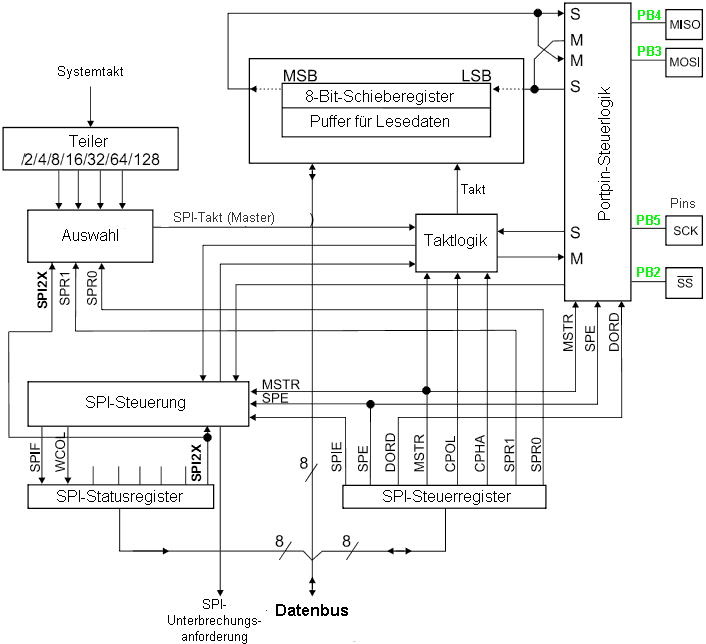 das für den Datenaustausch zwischen den Registern und dem SPI Schieberegister verwendet wird.