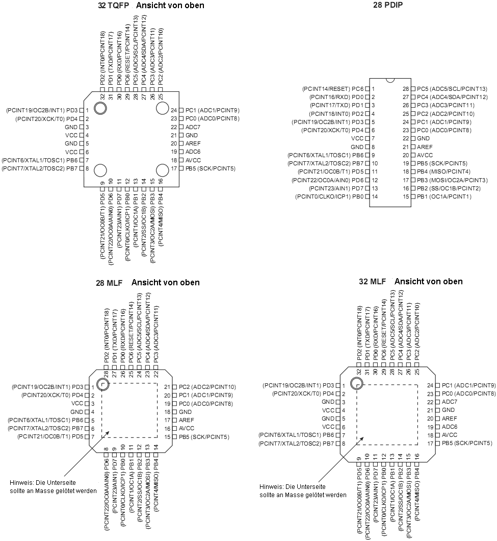 In den Bausteinen im TQFP- und QFN/MLF-Gehäuse stehen