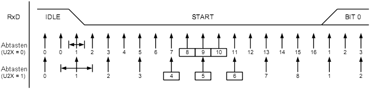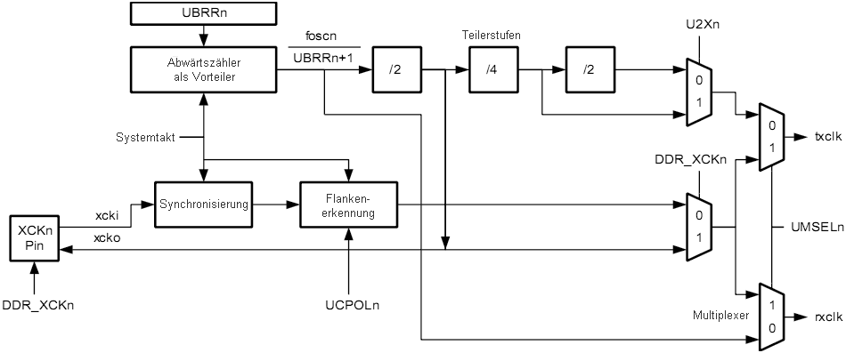 Dieser Takt ist der Baudratengenerator-Ausgangstakt (= fosc/(UBRR+1)).