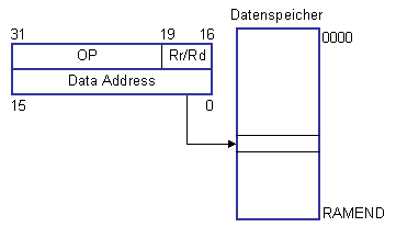 In Bausteinen ohne SRAM entspricht die indirekte Datenadressierung der indirekten Registeradressierung.