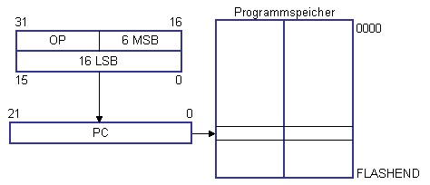Die 16-Bit-Adresse in den unteren 16 Bit des zwei Worte langen Befehls gibt die