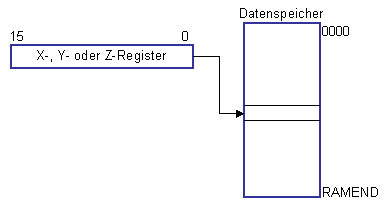 (SRAM, Register, I/O-Speicher und erweiterten I/O-Speicher) zuzugreifen.