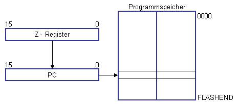 Die Ausführung des Programms wird an der Adresse fortgesetzt, die in den 16 Bit des Z-Registers angegeben ist.