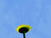 Der Screenshot zeigt eine Blume von schrägunten. Die Kamera ist nach oben gerichtet. Perspektivisch korrekt wird der Himmel in Form einer Textur angezeigt.
