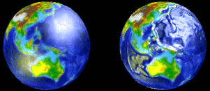 Bei der linken Weltkugel wurde die Textur einfach über das Modell gezogen und angezeigt. Dabei wirkt die Kugel spiegelglatt. Im rechten Erdball kam zusätlich noch eine Bumpmap zum Einsatz. Beachten Sie, wie das Spekularlicht reflektiert wird. Man hat den Eindruck eines unebenen (verschrumpelten) Erdballs.