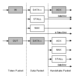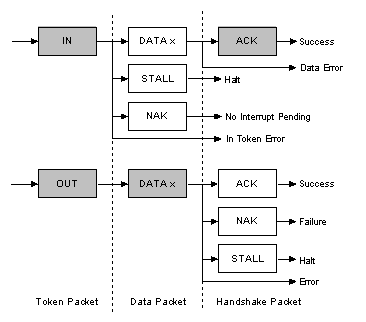 The above diagram shows the format of an Interrupt IN and Interrupt OUT transaction.