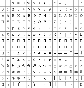 Man beachte, dass die WMF-Ausgabe die Verwendung der Symbol-Schriftart erforderlich macht.