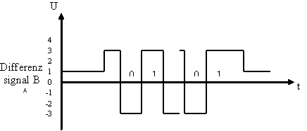 Die Spannungsdifferenz zwischen High- und Low-Pegel, gemessen zwischen B und A, sollte zwischen 4 V und 7 V liegen. Dabei sollte der positive und negative Spannungswert etwa gleich gross sein. Der Unterschied zwischen den beiden Werten liegt in der Praxis bei etwa 0,5 V. Der Ruhepegel sollte ca. 1 V betragen.