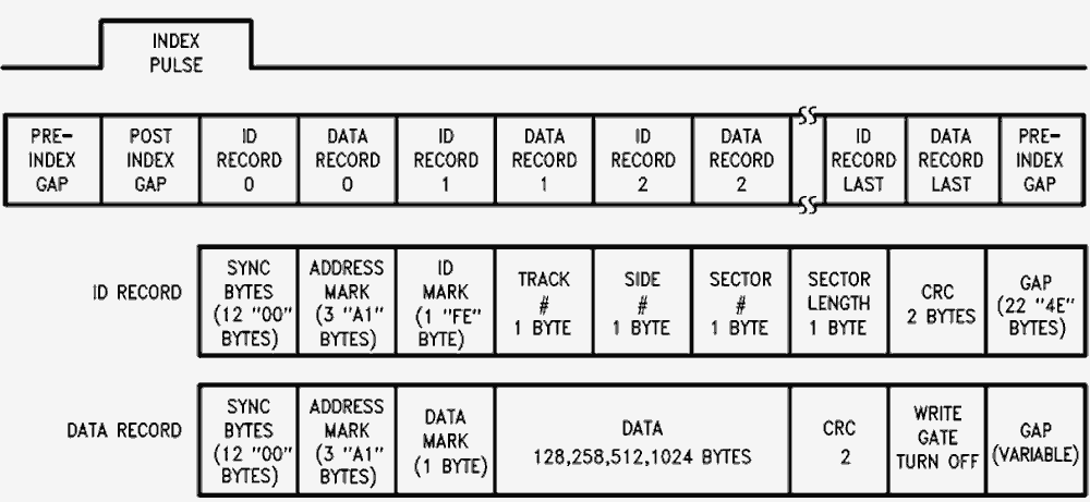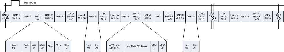 Note 1: A final gap field is added from the end of the last sector until the INDEX pulse occurs and this gap is often termed Gap 5. It takes up the slack from the end of the last sector to the Index pulse.