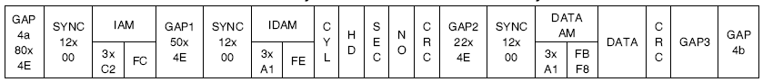 slightly different (nearer to the ISO Double Density Format) as it does not have an IAM byte (and associated GAP),