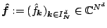 In particular, we incorporate damping factors \(\hat w_{{\boldsymbol{k}}}> 0\), \({\boldsymbol{k}} \in I_{{\boldsymbol{N}}}^d\), and consider the optimal interpolation problem \[ \|{\boldsymbol{\hat f}}\|_{{\boldsymbol{\hat W^{-1}}}}^2 =\sum_{{\boldsymbol{k}}\in I_{{\boldsymbol{N}}}^d} \frac{|\hat f_{{\boldsymbol{k}}}|^2}{\hat w_{{\boldsymbol{k}}}} \stackrel{{\boldsymbol{\hat f}}}{\rightarrow} \min \quad \text{subject to} \quad {\boldsymbol{A}} {\boldsymbol{\hat f}} = {\boldsymbol{y}}, \tag{2} \] where \({\boldsymbol{\hat W}}:= {\rm diag}(\hat w_{{\boldsymbol{k}}})_{{\boldsymbol{k}}\in I_{{\boldsymbol{N}}}^d}\).
