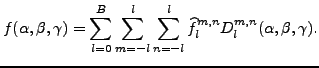 This library of C functions evaluates a function \(f \in \mathrm{L}^2(SO(3))\) with finite orthogonal expansion \[ f(\alpha,\beta,\gamma)=\sum_{l=0}^{B}\sum_{m=-l}^l\sum_{n=-l}^{l}\widehat f^{m,n}_lD^{m,n}_l(\alpha,\beta,\gamma). \] in terms of Wigner-D functions \( D^{m,n}_l\) on a set of arbitary nodes \(\left(\alpha_d,\beta_d,\gamma_d\right)\), \(d=1,\ldots,D\), \(D \in \mathbb{N}\), in Euler angles. Furthermore, the fast evaluation of sums \[ \tilde{\widehat f}^{m,n}_l:= \sum_{d=1}^{D} f\left(\alpha_d,\beta_d,\gamma_d\right) \overline{ D^{m,n}_l \left(\alpha_d,\beta_d,\gamma_d\right)} \] for given function values \(f\left(\alpha_d,\beta_d,\gamma_d\right) \in \mathbb{C}\) and all indices \( l,m,n\) is the adjoint NFSOFT.