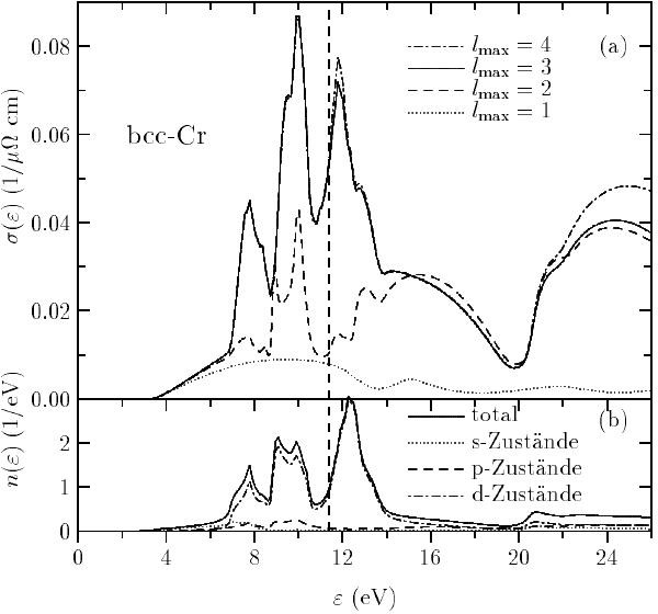 | Berechnet wird die Streuwegmatrix T(0s'L',0sL) in der Zelle Null und daraus S, der hermitesche Anteil von I + T. Die Spuren Tr S und Tr SvSv führen zu den Zustandsdichten bzw. Leitfähigkeiten (v ist der Geschwindigkeitaoperator). |