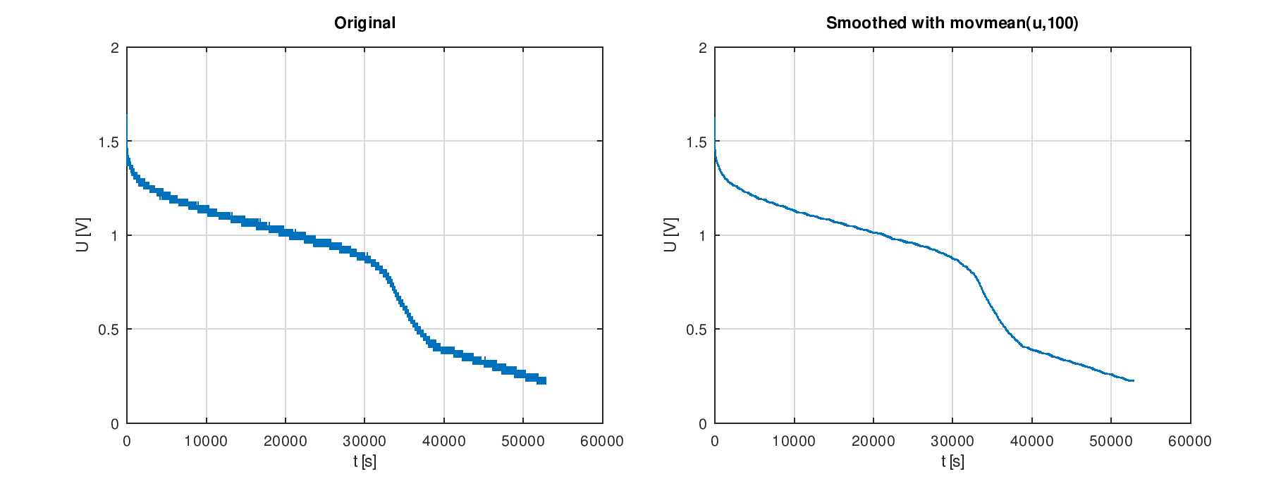 us=movmean(u,100), dieser berechnet einen Moving Average, vgl: