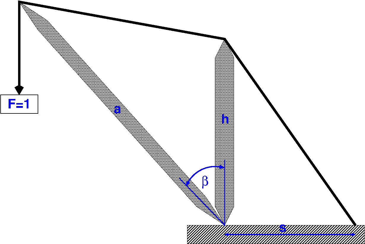 Wir betrachten den skizzierten (stark vereinfachten, zweidimensionalen) Derrickkran bzw. Derrickausleger.